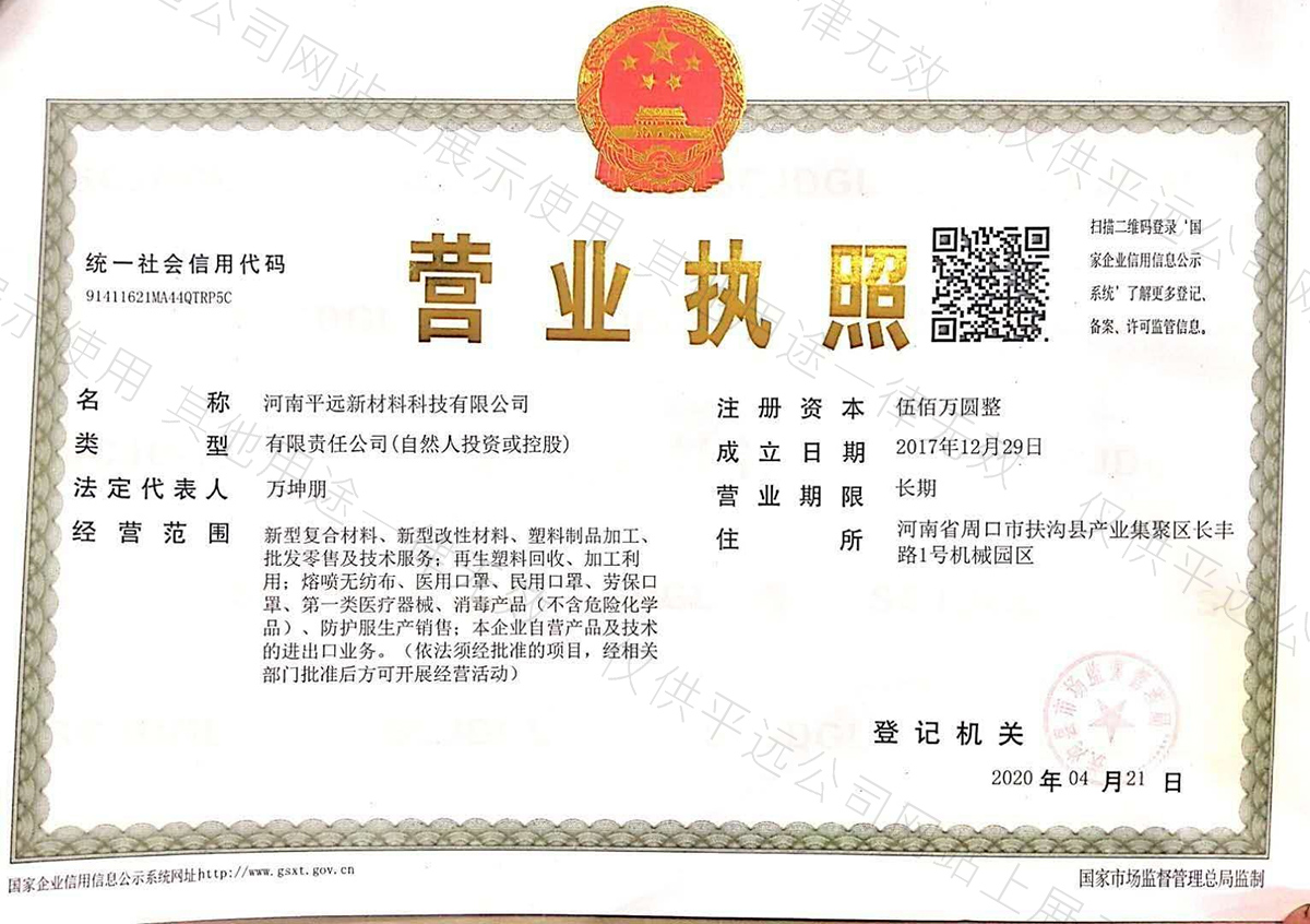 河南平遠新材料科技有限公司生產基地坐落于河南省鄢陵縣先進制造業開發區,工廠占地10000平方米。公司通過GRS全球回收標準認證、ISO9001質量體系、14001環境體系和45001職業健康安全管理體認證。華東分公司位于浙江省余姚市中國塑料城。